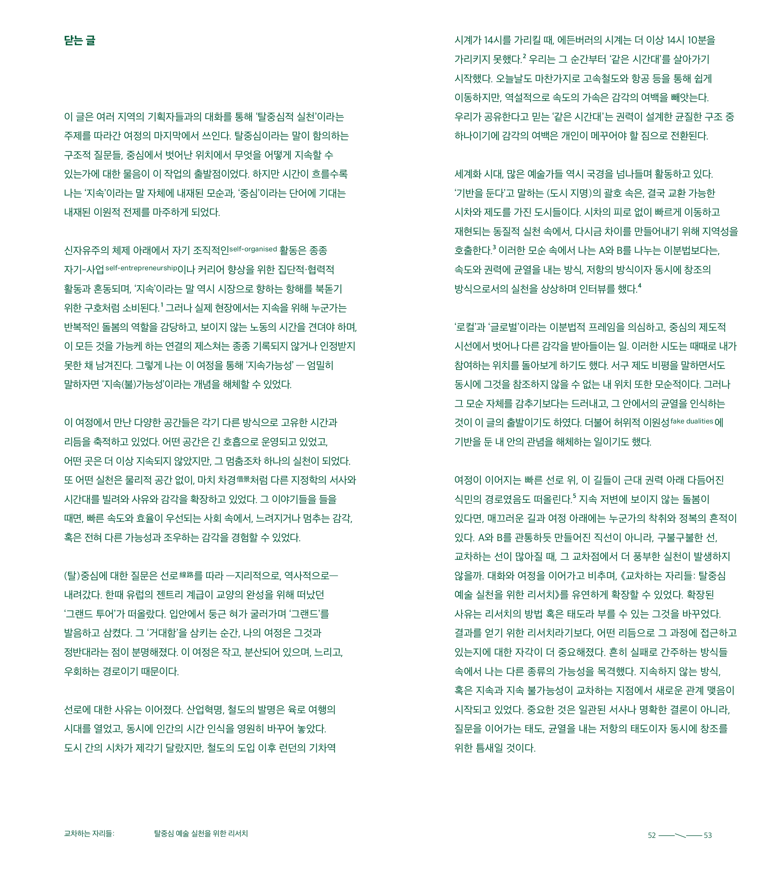 교차하는 자리들: 탈중심 예술 실천을 위한 리서치 On Shifting Grounds: Artistic Practices Beyond Centrality
